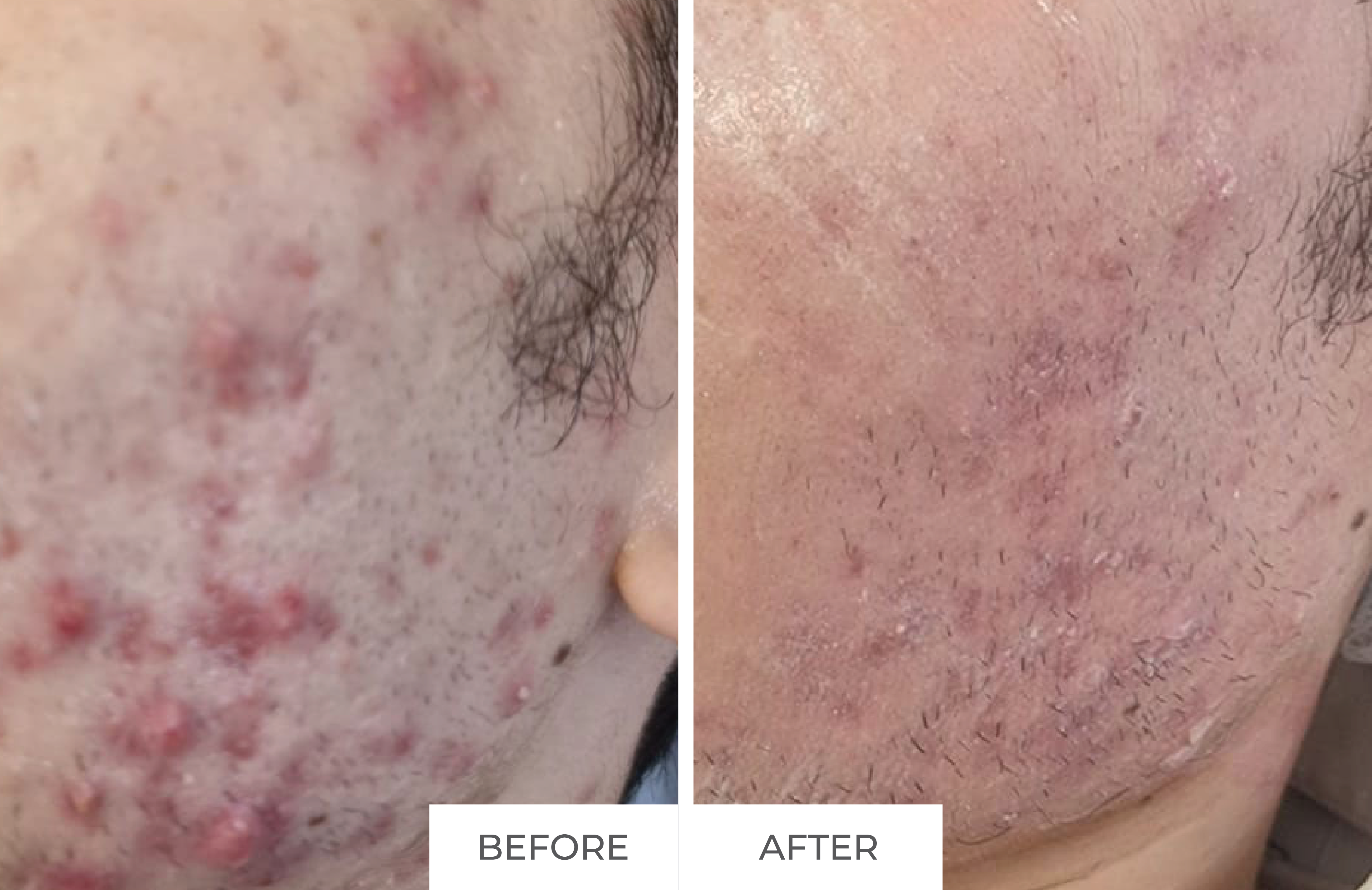 טופל ע"י אוריאל בוזגלו קוסמטיקאי מוסמך, רחובות 054-2854955 תוצאה בטיפול אקנה דלקתי פפולה, על ידי שימוש בתכשיר אזו++ המכיל 15% חומצה אזאלית לאיזון וויסות רמת השומניות בעור, לריפוי הפצעים, להרגעת הדלקת ולהפחתת רמת האדמומיות בעור. *התוצאה לוותה בשימוש בתכשיר יחד עם טיפול קליניקה בהתאם*